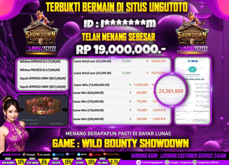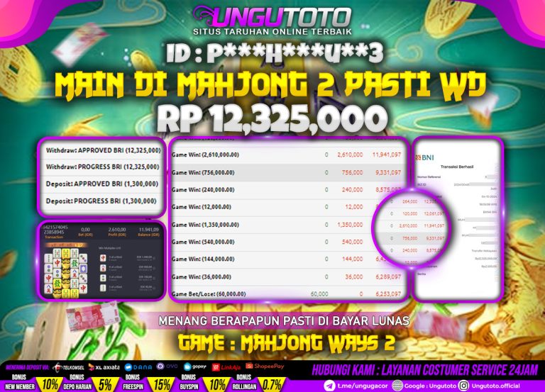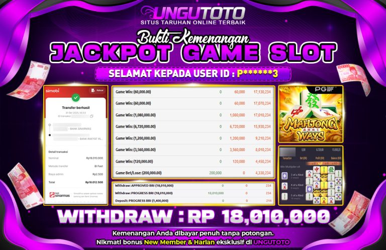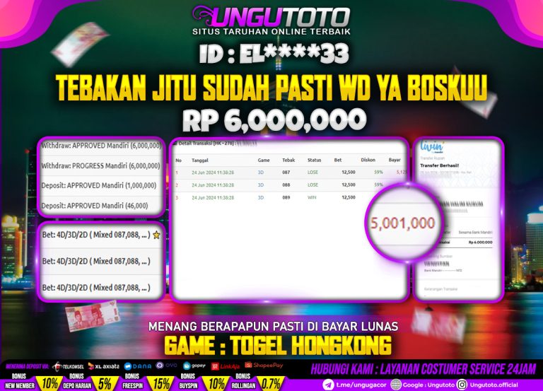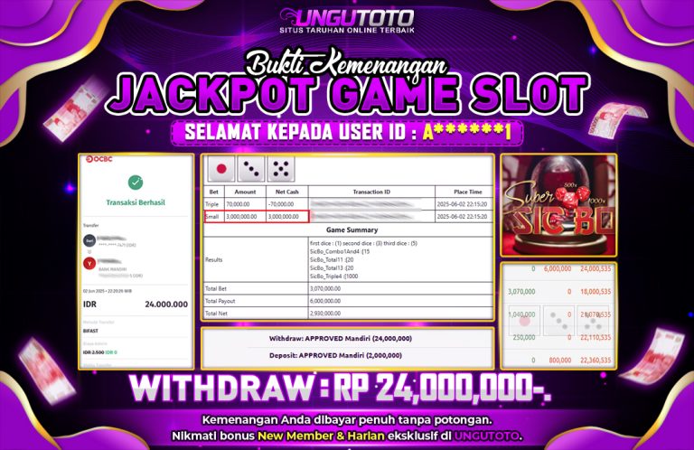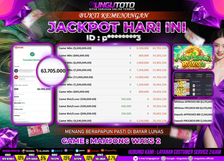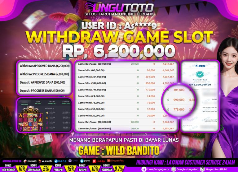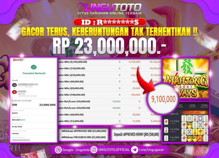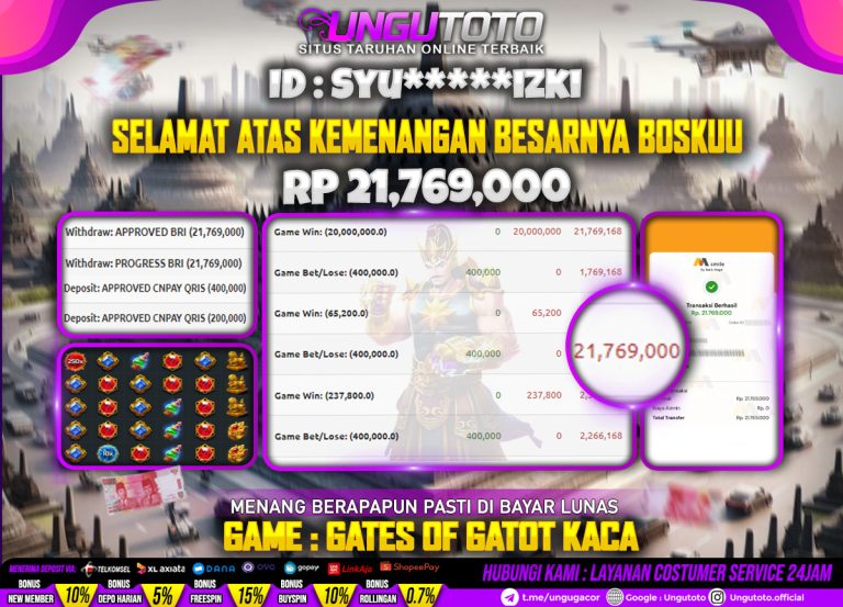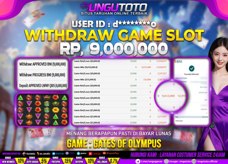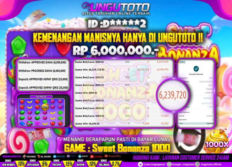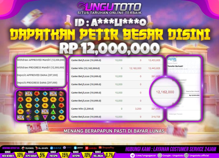 BUKTI WD TERBARU GAME : GATES OF OLYMPUS 1000 DEPOSIT : 3,360,000.- WITHDRAW : 21,209,000.- UNGUTOTO BANDAR JUDI TERPERCAYA BERIKUT PANDUAN CARA BERMAIN DENGAN AMAN Halo para penggemar judi online di Indonesia! Jika Anda sedang mencari bandar judi terpercaya UNGUTOTO menghadirkan pengalaman judi yang gacor dan amanah, Anda telah datang ke tempat yang tepat….