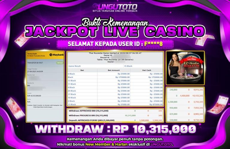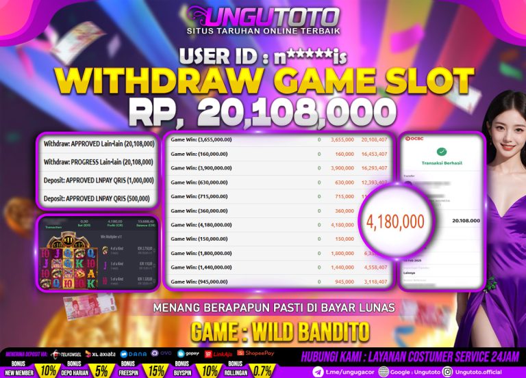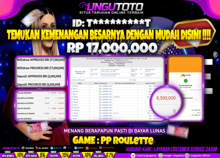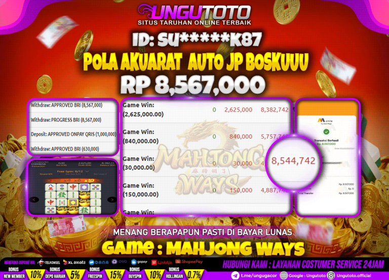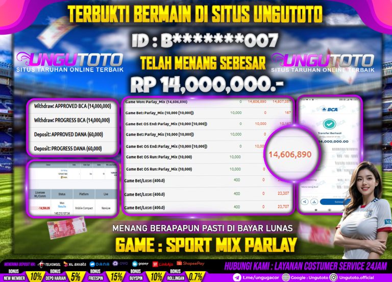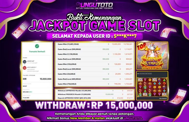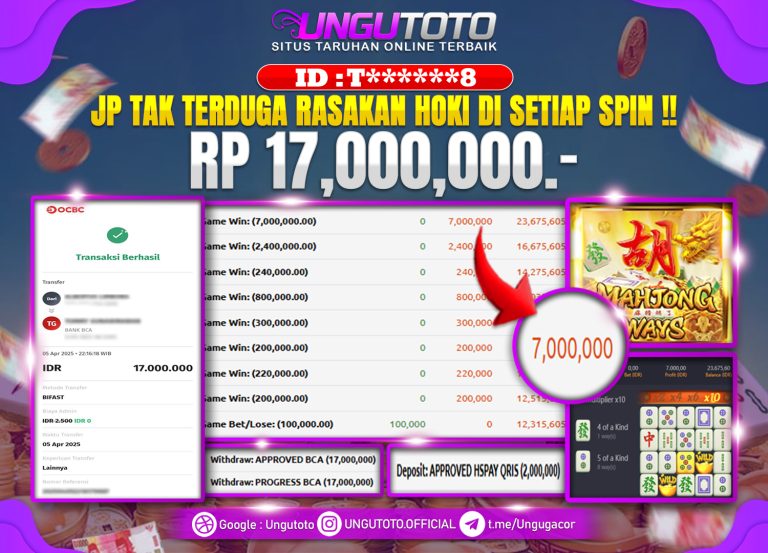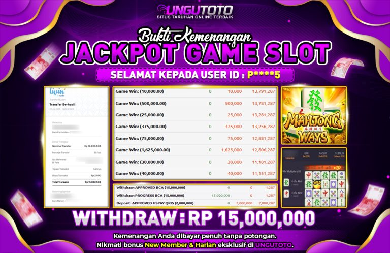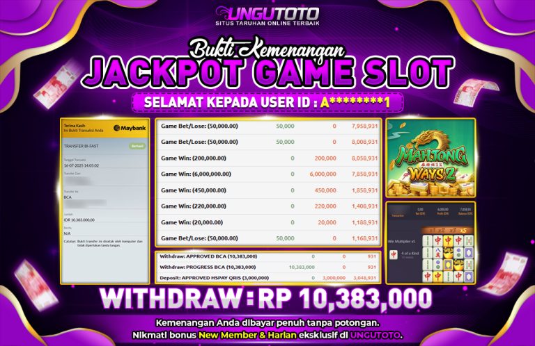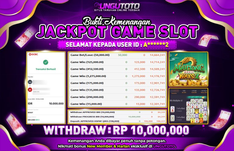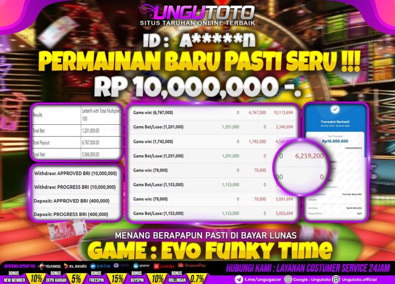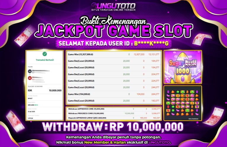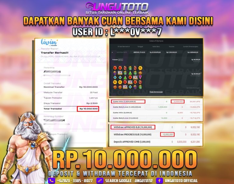 BUKTI WD TERBARU GAME : GATES OF OLYMPUS 1000 DEPOSIT : 3,360,000.- WITHDRAW : 21,209,000.- UNGUTOTO BANDAR JUDI TERPERCAYA BERIKUT PANDUAN CARA BERMAIN DENGAN AMAN Halo para penggemar judi online di Indonesia! Jika Anda sedang mencari bandar judi terpercaya UNGUTOTO menghadirkan pengalaman judi yang gacor dan amanah, Anda telah datang ke tempat yang tepat….